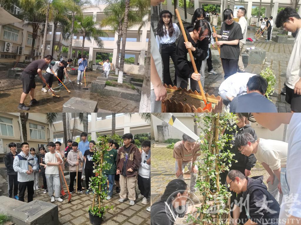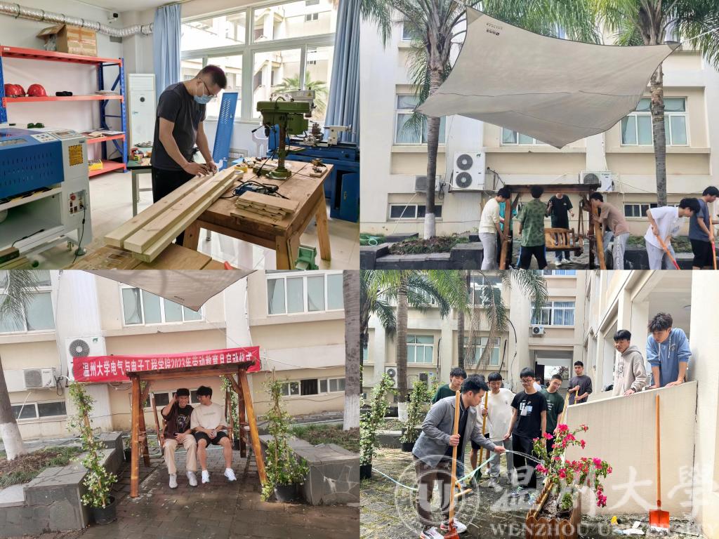 槐夏四月,在新澳门六合彩 电气与电子工程学院AB楼幢中庭,这里正在举行一次别开生面的劳动。近50名师生齐聚这里,他们准备完成一次特别的任务,动手“改造”他们的后花园。
