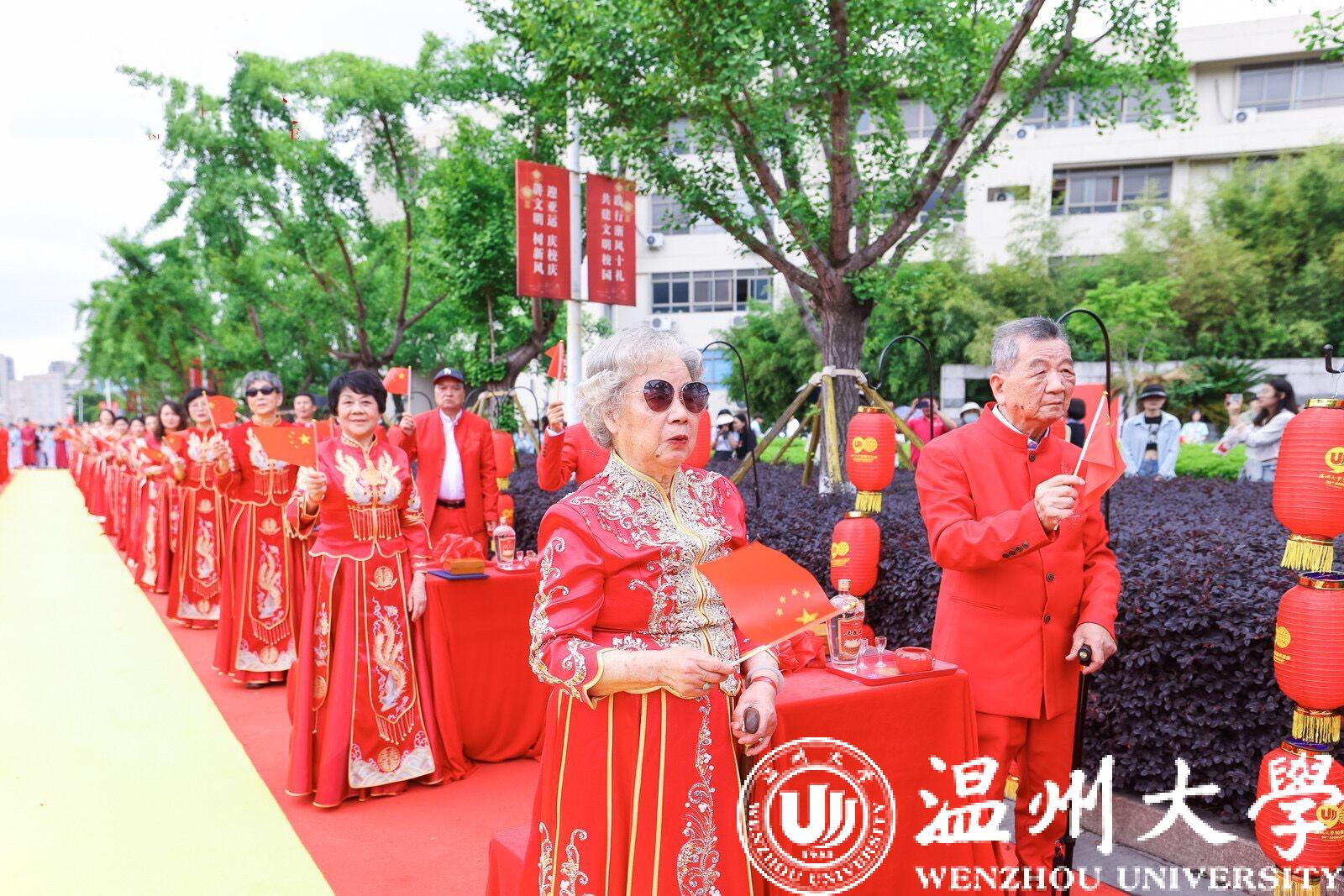 “我今年虚岁已经90岁,正好与新澳门六合彩 同龄。”在参与盛会的校友夫妻中,原温师专毕业生杨成玉与施品真,是年龄最长的校友夫妻。杨成玉告诉记者,他与爱人结识于新澳门六合彩 ,毕业后都曾经留校工作,已经共同生活61年。“因为新澳门六合彩 的培养,给了我婚姻、事业、家庭。今天参加新澳门六合彩 的90周年校友纪念婚礼,更是喜上加喜。”