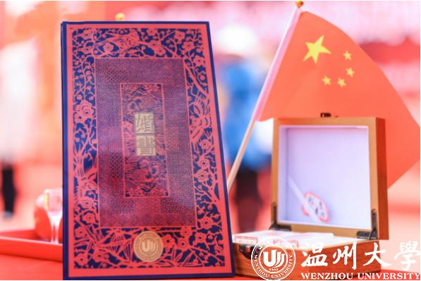 白鹿衔花,群鸥逐浪,正值万物并秀……古色古香的纪念婚书匠心独具,以700多年历史的细纹刻纸技艺精心打造,见证着校友夫妻的青春岁月。