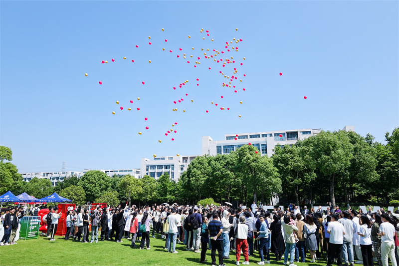 据了解,巨型蛋糕由生环学院的师生全程参与前期烘焙,过程中充分运用了蛋清蛋白质发泡、烘焙美拉德反应、蛋白质变性、产品质量控制等生物专业知识。在新澳门六合彩 90周年华诞之际,师生们将烘培课堂从实验室搬到户外大草坪,结合自身专业学以致用、知行合一,以专业实践的劳动成果致谢母校、献礼母校,一起描制独属于新澳门六合彩 的“艺术画卷”。青天描画屏,燕草碧如丝,现场师生共享美味蛋糕,随着“‘求学问是、敢为人先’,祝新澳门六合彩 生日快乐!”的祝福呐喊,彩色气球伴随着生日歌升上天空。