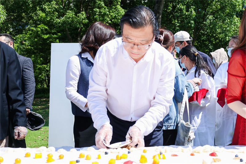 生环学院党委书记姜海燕表示,“九秩芳华,栉风沐雨,我们生环学院的师生在学校办学90周年之际手工制作9米蛋糕,活动选在9:33开始是对新澳门六合彩 1933年初始办学的纪念。同时,这是一堂知行合一的专业实践教学活动,是一场把生物技术专业课堂搬到户外的劳动教育课,更是师生对学校未来蓝图的美好描画,是新澳门六合彩 学子对母校90周年华诞的深情献礼,活动不仅有利于夯实学生自身的专业能力,更能激发学生爱专业、爱学校、爱生活的积极态度。”