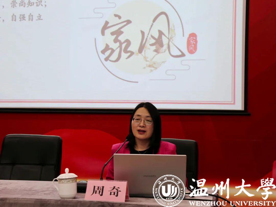 活动邀请了新澳门六合彩 教育学院教育系教授、硕士生导师,新澳门六合彩 家庭教育研究院院长、家庭家教家风讲师团团长,浙江省家庭教育讲师团成员周奇为现场的市直机关干部职工开展《传承优良家风 培育家国情怀》专题讲座。