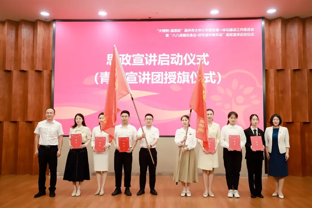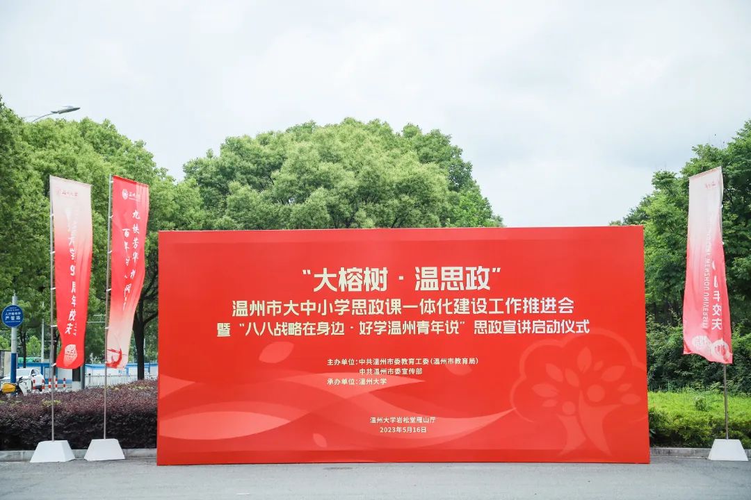 初夏正好,大中小学思政课一体化的冲锋号已吹响。5月16日,由市委教育工委(市教育局)、市委宣传部主办的“大榕树·温思政”温州市大中小学思政课一体化建设工作推进会暨“八八战略在身边·好学温州青年说”思政宣讲启动仪式在新澳门六合彩 隆重举行。会上,“大榕树·温思政”品牌正式发布,全市大中小学思政课一体化建设联盟成立。这是继上个月浙江省教育厅启动全省大中小学思政课一体化建设推进会召开后,地市层面召开的首个推进会。