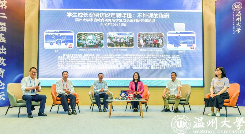 下午举行了家校社共促学生成长案例研讨会。研讨会有新澳门六合彩 教育学院党委副书记章园园老师主持,新澳门六合彩 教育学院教授、新澳门六合彩 家庭教育工作坊负责人、新澳门六合彩 家庭教育研究院院长周奇、新澳门六合彩 教育学院党委书记何毅、新澳门六合彩 校友、瓯海中学正高级教师郑小侠、瓯海中学校长金志正、瓯海中学教师高雪鸥向与会嘉宾展示了学生成长案例访谈定制课程《不补课的陈豪》。