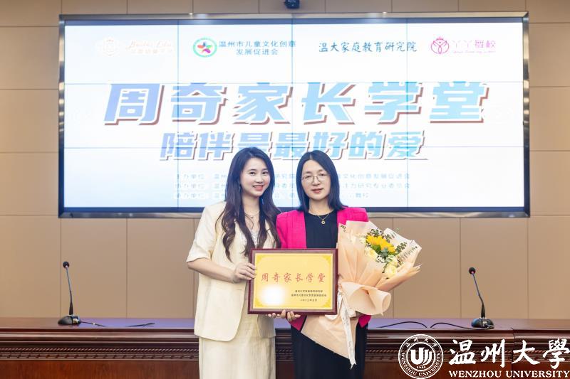 活动现场举行了授牌仪式。新澳门六合彩 家庭教育研究院院长周奇教授向温州童创会瑞安分会会长、蓓蕾幼童&丫丫舞校创始人杨晓琴授予“周奇家长学堂”基地。