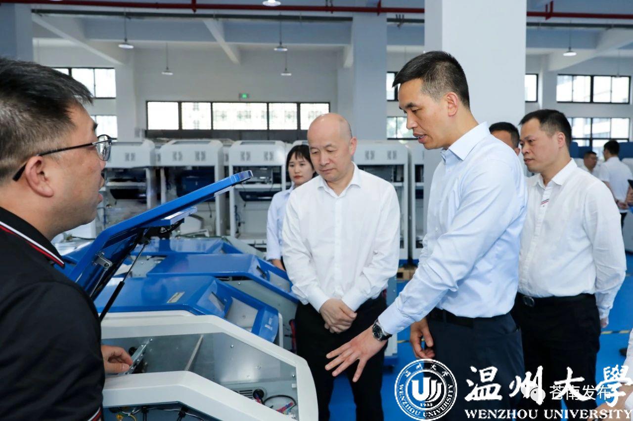 在新澳门六合彩 苍南研究院,张本锋实地参观研究院各功能区域并召开座谈会,详细了解研究院运行情况。据悉,新澳门六合彩 苍南研究院于2017年挂牌成立,围绕仪器仪表、塑料制品、印刷包装等产业,开展关键技术研发攻关、产业紧缺人才引进、科技成果转移转化、新产品开发、创新创业孵化和领军人才培养等工作,着力建设成为政产学研合作的示范基地。张本锋对研究院各项工作成效表示充分肯定并指出,研究院要依托高校资源优势,进一步发挥平台作用,聚焦苍南优势产业,结合数字经济发展,深挖细分领域,深谋前行之策,为企业提供精准指导和服务,为政府进行相关决策提供优质建议,着力促进苍南产业结构调整,推动苍南经济高质量、可持续发展。