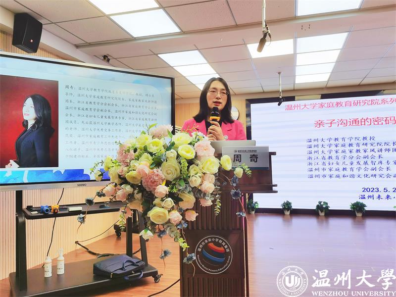 2023年1月,教育部等十三部门联合印发了《关于健全学校家庭社会协同育人机制的意见》。家校社协同育人,成为新时代立德树人的重要途径;营造“学校积极主导、家庭主动尽责、社会有效支持”的学生健康成长的良好氛围。为了促进家校沟通,加强家校合作,凝聚育人合力,2022年5月25日和26日晚六点半,新澳门六合彩 教育学院教育系支部书记、新澳门六合彩 家庭教育研究院巾帼文明岗负责人、新澳门六合彩 家庭家教家风讲师团团长、温州市家庭和谐文化研究会副会长周奇教授受温州市未来小学教育集团邀请分别为龙霞校区和南瓯校区的五年级家长做《掌握亲子沟通的密码》专题讲座。