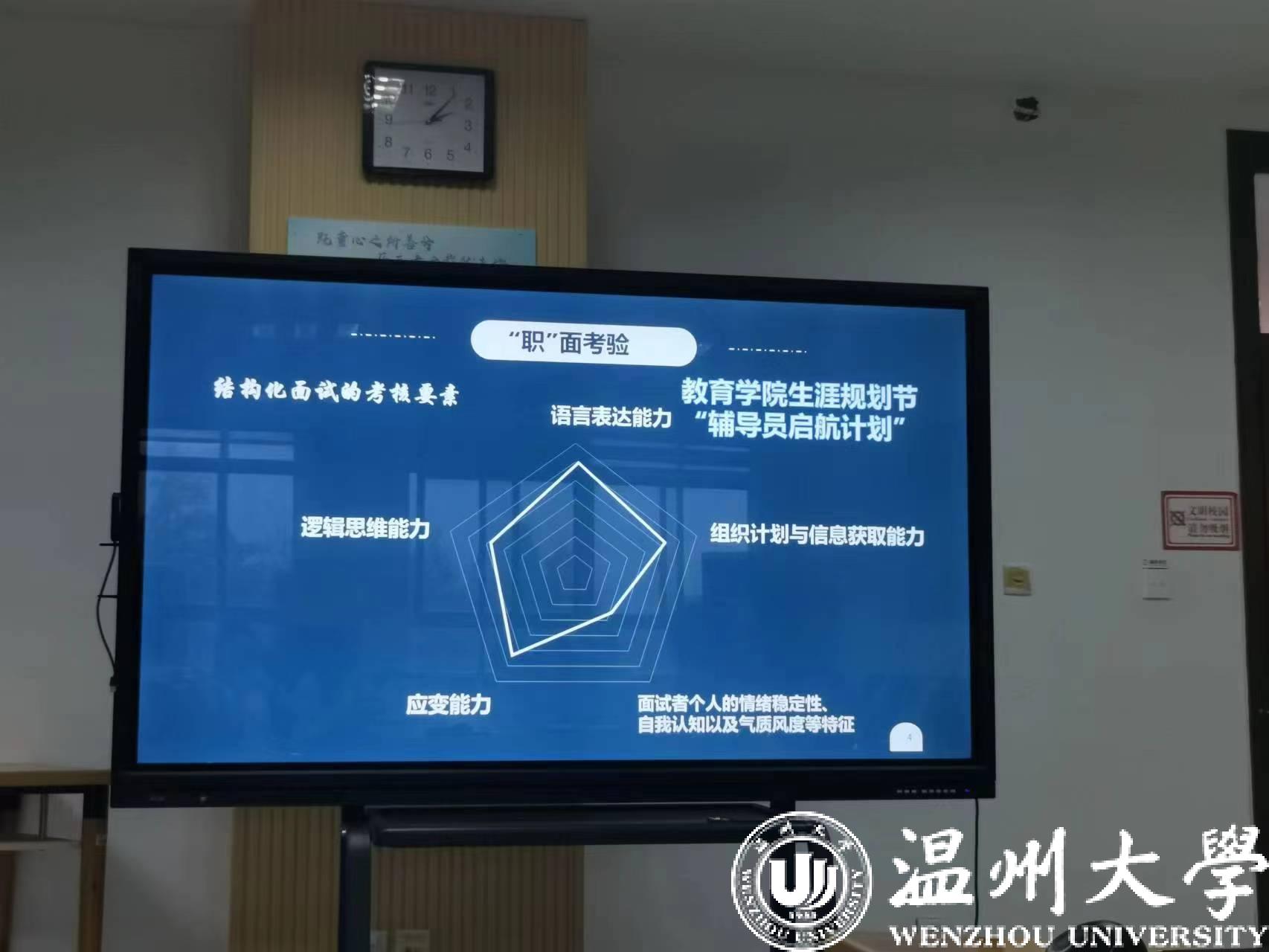 本次“未来辅导员启航计划”主要从辅导员岗位认知、理论知识、面试技巧以及模拟考试实践训练等方面依次开展。在了解辅导员这一岗位的入门环节,教育学院辅导员李金伟围绕“‘职’引灯塔——如何成为一名辅导员”这一主题,讲述了自己从新澳门六合彩 研究生到上岸成为一名新澳门六合彩 辅导员的亲身经历。他还为同学们详细介绍了辅导员工作的具体内容。当天到场的许多学生并非应届毕业生,他们纷纷表示,李老师的讲座让自己在迷茫的研一阶段就明晰职业规划。“我更清楚地知道了辅导员这个岗位是否适合我,而不是盲目随波逐流。”