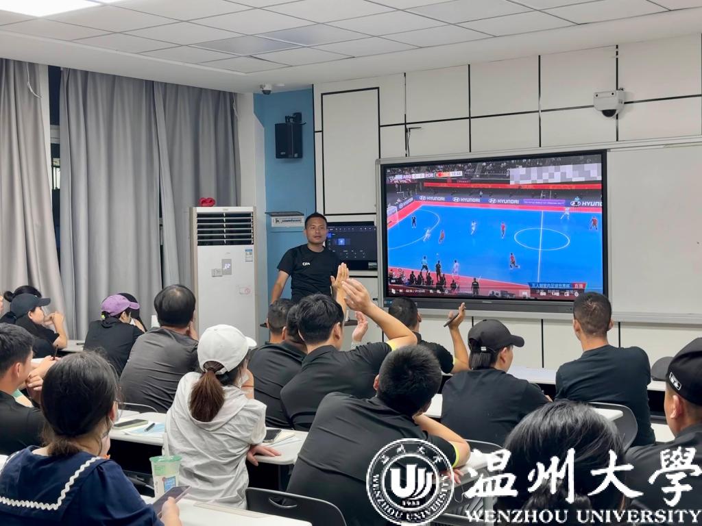 短短四天的时间里,老师们不仅需要参与高强度训练更享受了一系列专业系统性的培训。从第一天新澳门六合彩 体育与健康学院张文健院长关于《中国职业足球发展模式》的讲座到休闲体育系主任李豪杰教授带来的《足球运动损伤防护概论》;新澳门六合彩 副教授、国家级足球裁判林辉老师的《五人制世界杯比赛欣赏、竞赛规则与裁判法》;新澳门六合彩 奥林匹克与全球体育善治研究院院长、博士生导师易剑东教授带来的《中外足球青训比较》以及新澳门六合彩 教授、硕士研究生导师的陈明教授给大家带来了《中小学校园足球竞赛组织与管理工作》,都让参与培训的老师直呼“干货满满”,收获颇丰。