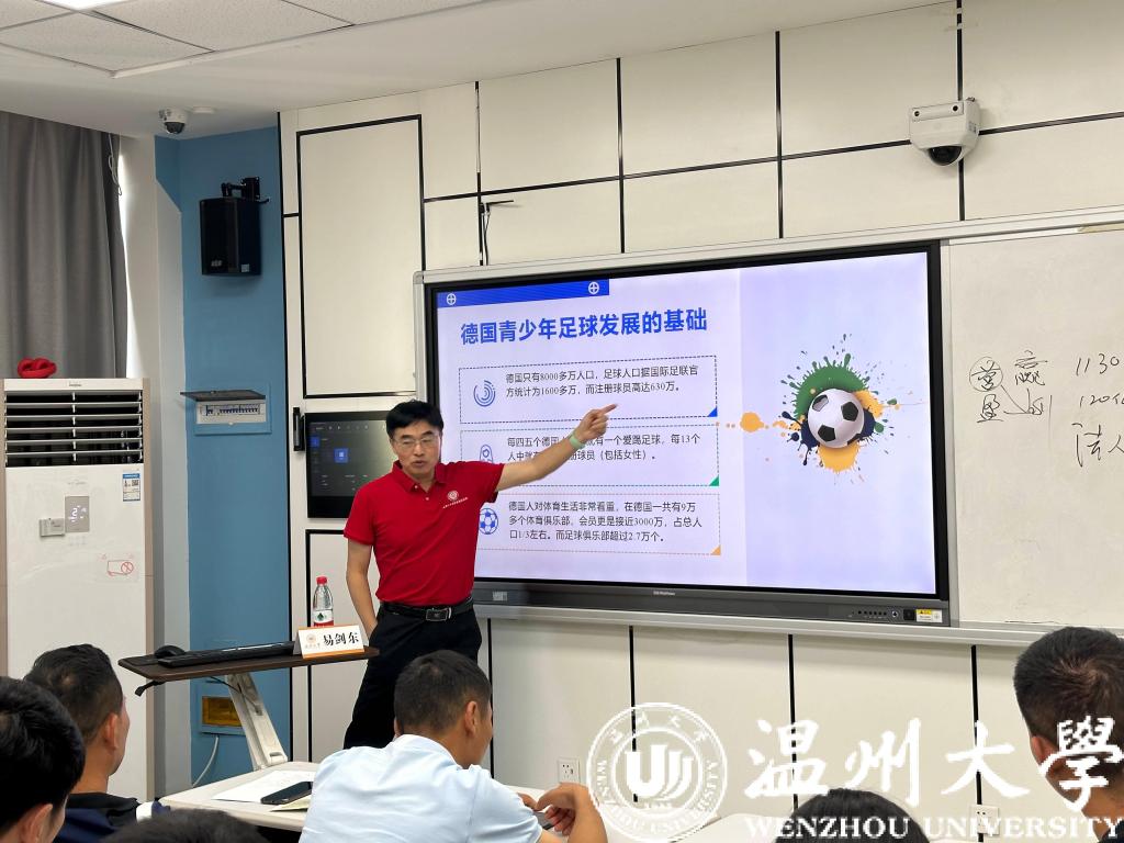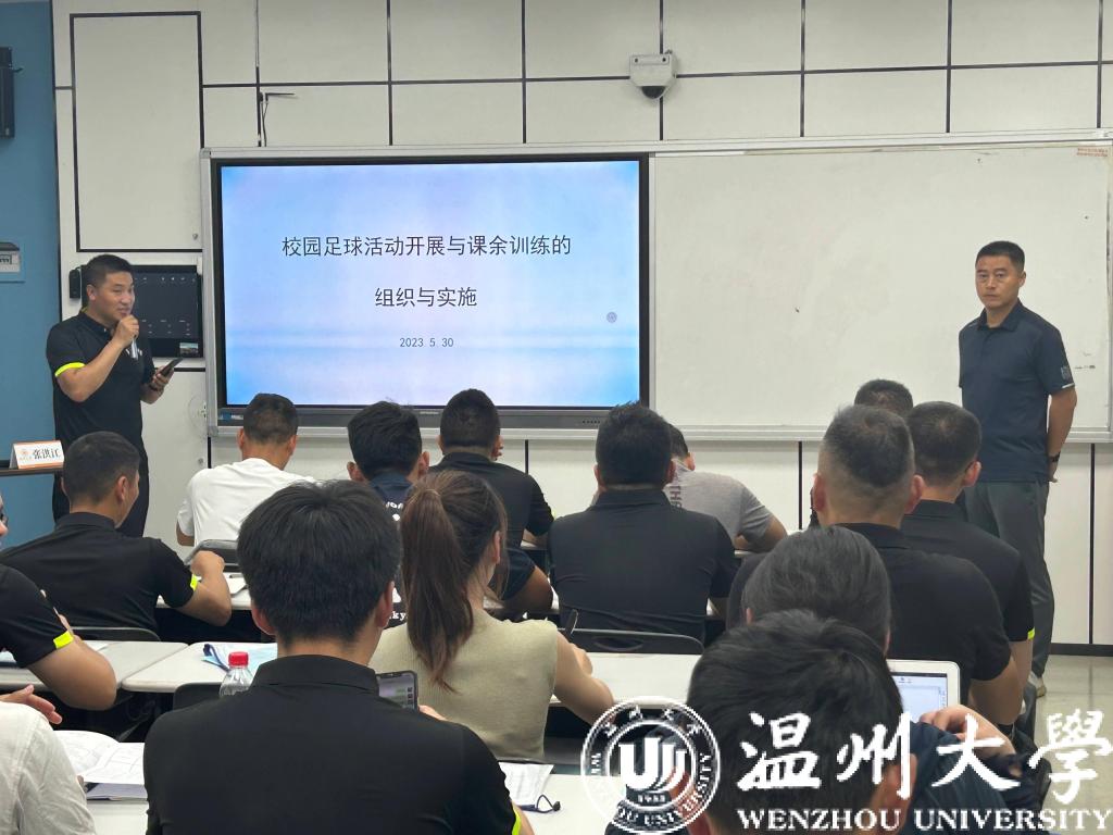 本次培训班的开展,正是旨在让温州中小学体育老师和各级各类学校领导清晰校园足球发展的路径、推动的重点,做到从校园足球教练转变到校园足球教师、从关注校园足球队转变到关注校园足球文化体系、从靠体育老师单打独干做校园足球转到学校校领导牵头开展校园足球工作的三个转变。