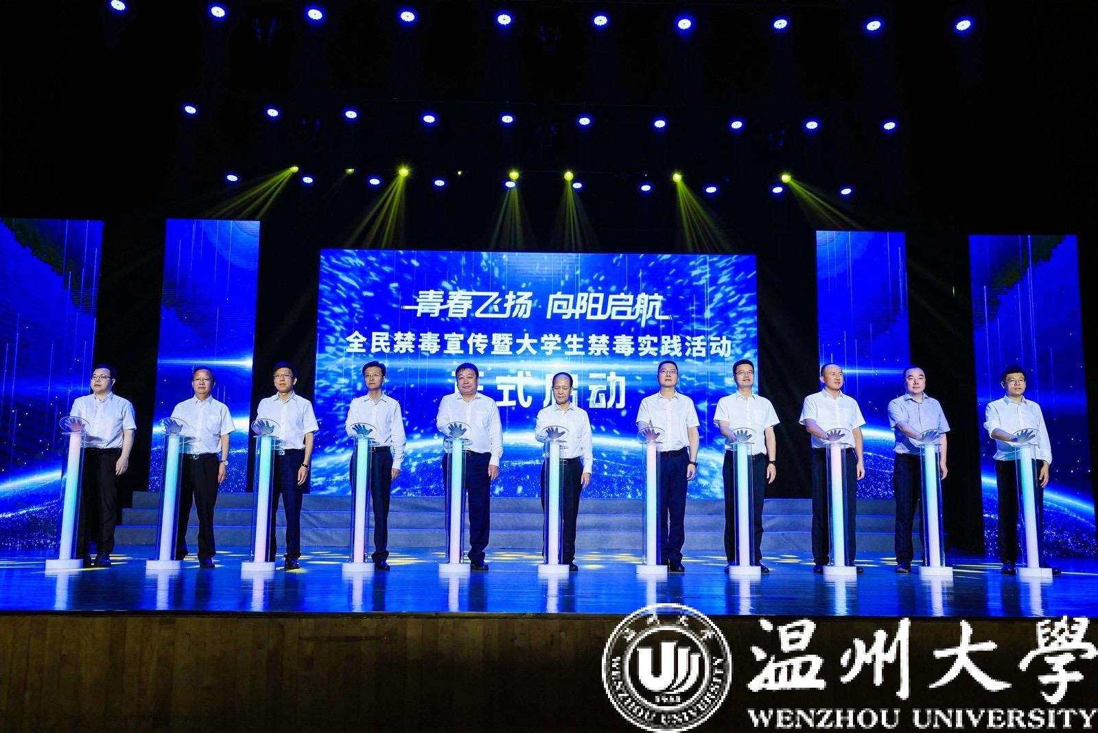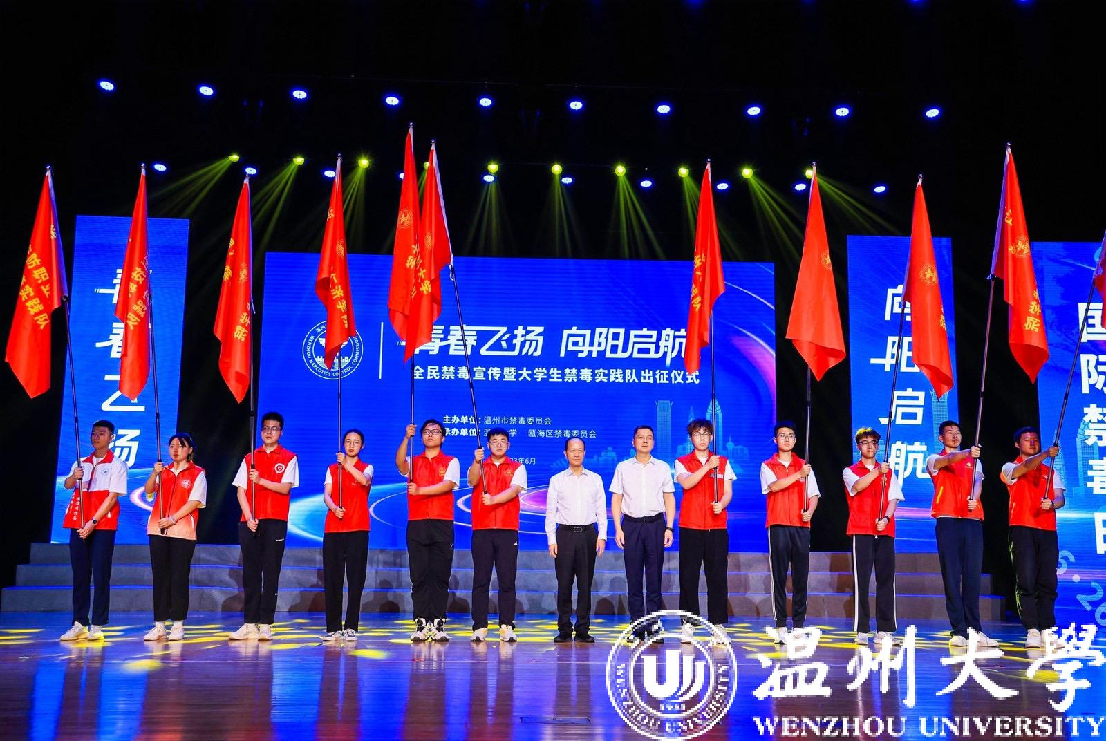 6月14日下午,第36个“6·26”国际禁毒日来临之际,由温州市禁毒委员会主办,新澳门六合彩 承办的“青春飞扬 向阳启航”全民禁毒宣传暨大学生禁毒实践队出征仪式和禁毒主题游园会在新澳门六合彩 举行。