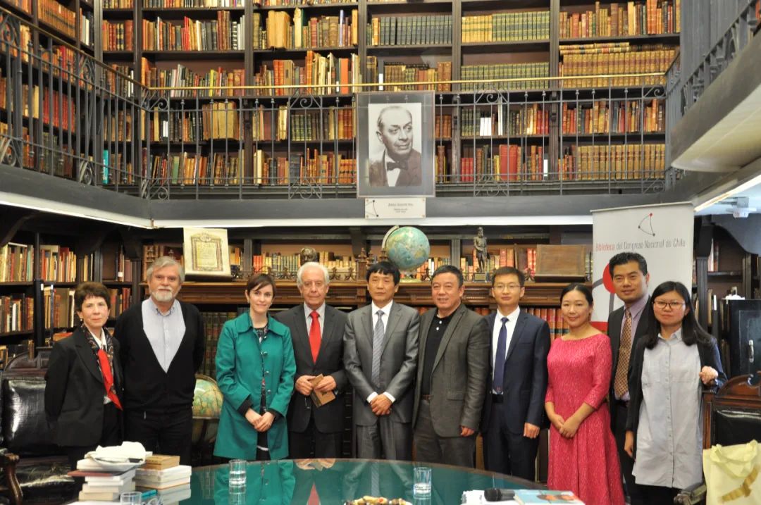 蒋胜男(右三)与其他中国作家参加南美文学周活动。