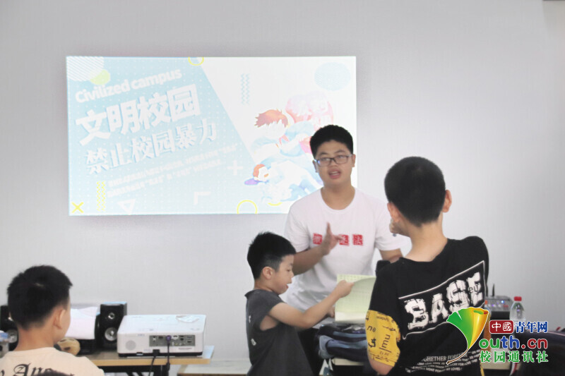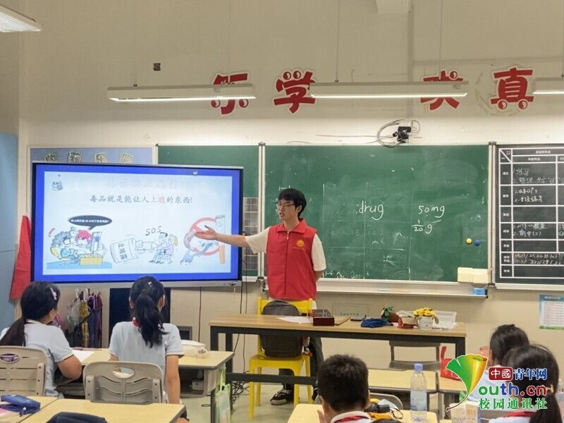 图为实践团在新澳门六合彩 城附属学校开展防毒禁毒普法活动。中国青年网通讯员章志铖供图