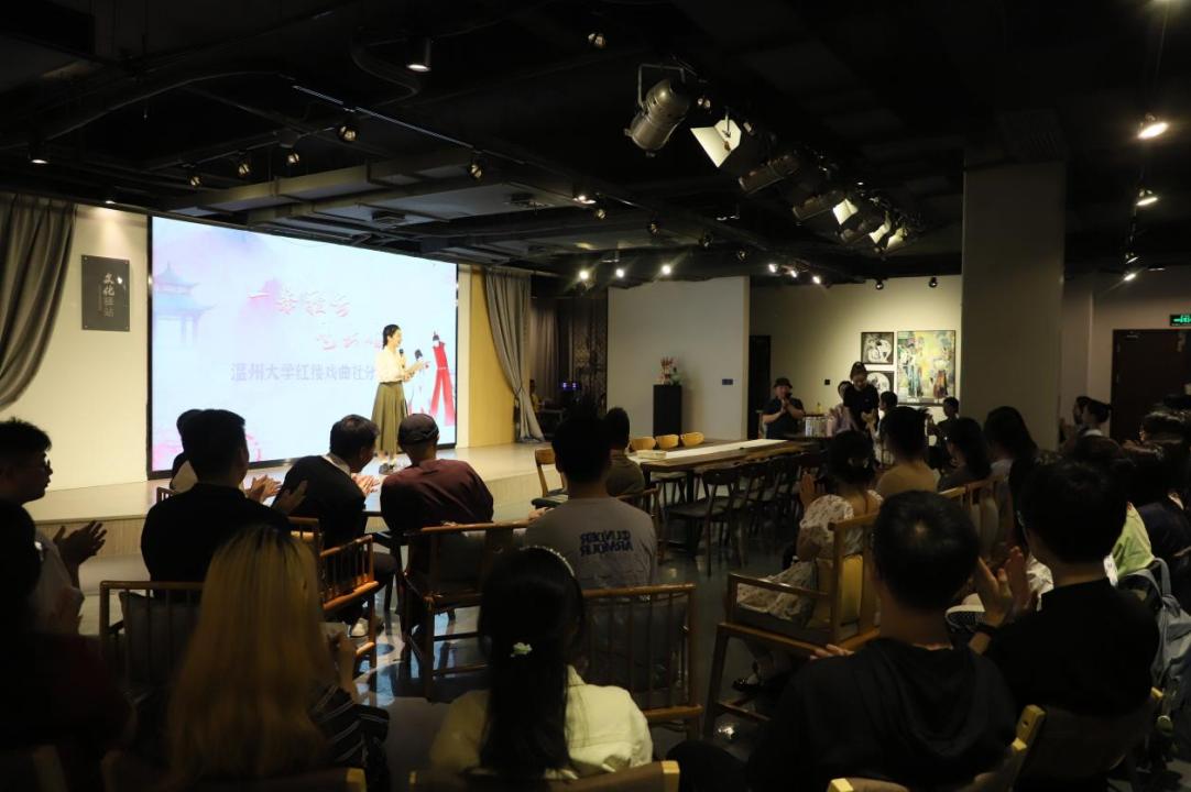 文苑文化驿站背靠温州市越剧院为优势,是全市众多文化驿站中唯一一个以“把戏说给你听”为活动特色的驿站。本场活动的策划人、温州市越剧院工作人员清言介绍,以往的推广活动以“我讲你听”的讲座形式为主。本次分享会面向大学生,所以效仿了“综艺节目”的形式,把温越历史、戏曲知识、南戏文化等融入游戏中,让大学生能在玩中学、学中玩。