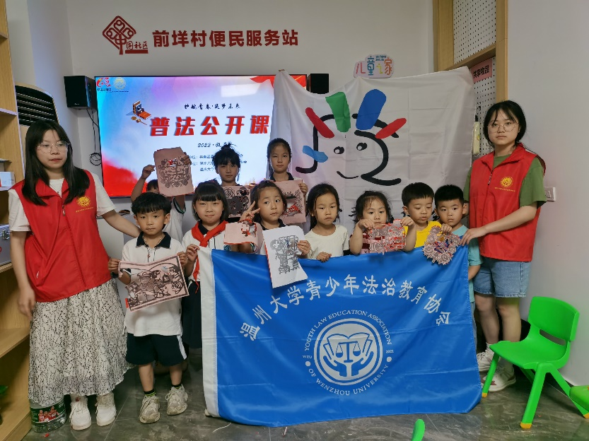 孙猴王法律知识、普法益智拼图、爱国花环DIY、普法剪纸制作……近日,这群普法志愿者在瓯海区郭溪街道前垟村党群服务中心开课,来自辖区内的20余位青少年到前垟文化礼堂报到,就近体验由新澳门六合彩 青少年法治教育协会、手艺协会为他们量身定制的普法课堂、法治主题剪纸等教育活动,开启家门口的“快乐节日行”。