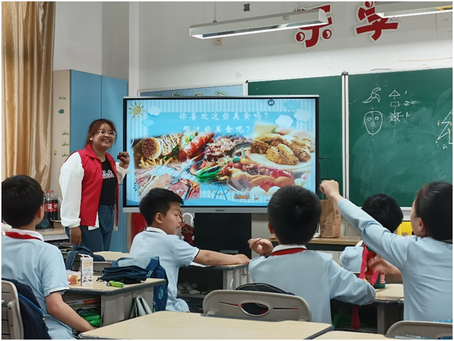 “同学们在日常生活中最喜欢吃什么呀?”伴随普法员的提问,小朋友们便陷入了热烈的讨论。“我喜欢面包!”“我最爱喝牛奶了,妈妈说它可以长高!”……在小组讨论不断深入的同时,董星平也向同学们介绍合理的饮食习惯,同学们都纷纷点头表示同意。
