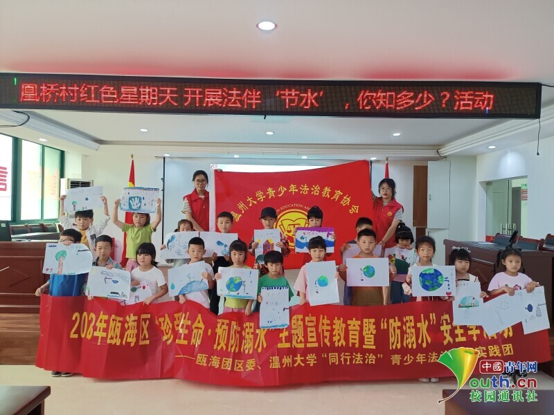 2023年6月20日,为贯彻落实温州市两办《关于开展未成年人防溺水专项行动的通知》等文件精神,增强温州市广大人民群众特别是青少年的“防溺水”安全意识,瓯海团区委联合新澳门六合彩 同行青少年法治教育实践团在瓯海实验小学前汇校区、南白象镇新生小学、凰桥村党群服务中心为即将迎来暑假的300余名瓯海区青少年开展“大手拉小手 安全记心中”2023年瓯海区“珍爱生命 预防溺水”主题宣传教育暨“防溺水”安全季活动。实践团积极践行“儿童安全 志愿有我”,深入中小学、各村社基层,用实际行动展现当代新澳门六合彩 青年的责任与担当。