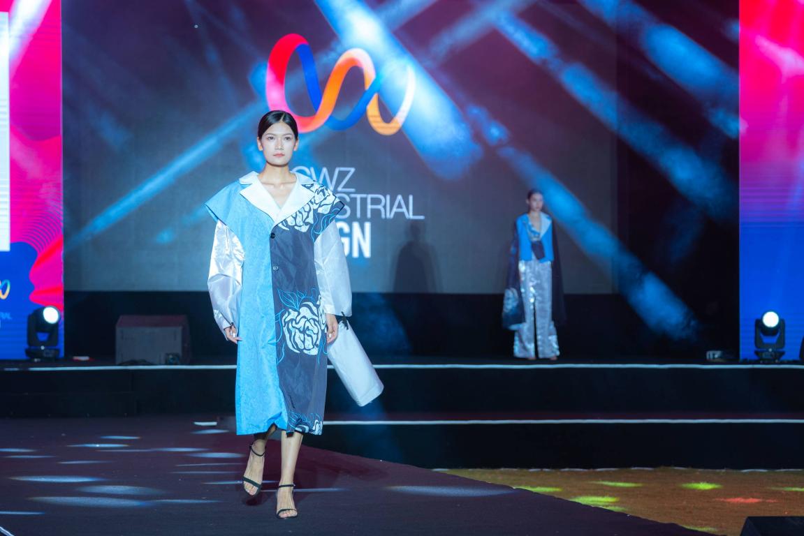 有热血般穿行在西北的服装、酷炫式猎鹰计划的作战鞋、有个性的眼镜展示、还有可爱萌娃“秀”童装……来自全国高校、企业等单位的28件优秀作品在现场以时尚之名点燃创意的火焰,是通过模特走秀的演绎,从而让观众一睹设计师天马行空的创意。