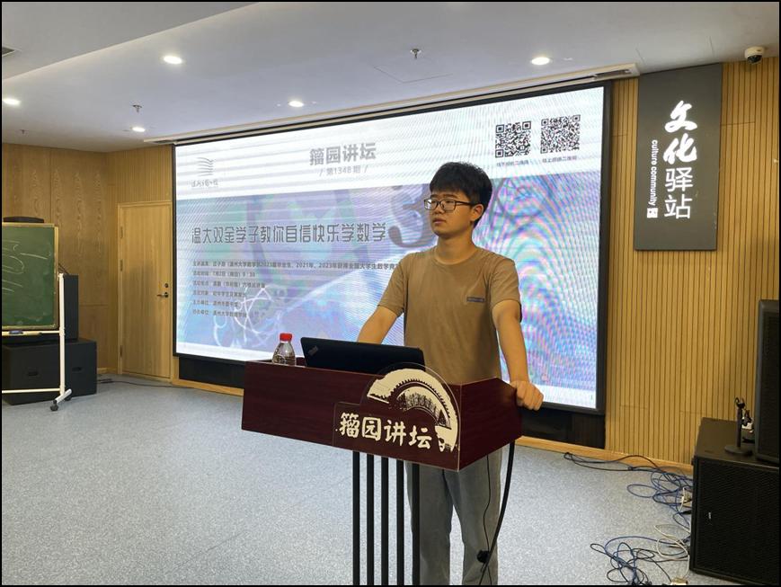 “我们经常会看到这类现象,一些数学还不错的学生进了中学后,逐渐丧失了对数学的兴趣,甚至厌恶数学。究其原因,很大一部分在于随着考试难度不断加大,导致不少学生因考试反复失利而产生挫败感。对此,我将与同学们一起探讨如何保持对数学的兴趣以及克服对数学的恐惧……”近日,在温州市图书馆举行的第1348期籀园讲坛上,来自新澳门六合彩 数理学院的庄子游同学,面向中学生及其家长悉心分享自己的学习体会,吸引线上线下近万人次参与观看。