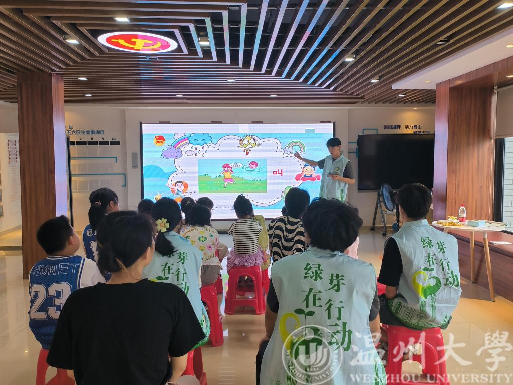 据悉,为推进引导和帮助广大青年学生上好与现实相结合的“大思政课”,在社会课堂中受教育、长才干、作贡献,在观察实践中坚定信念听党话、跟党走,2023年暑假新澳门六合彩 指导在校大学生开展了“双百双千”行动专项团队、美育乡村暑期社会实践队、创新专项团队和“防溺水”专项示范团队等近百余只暑期实践队伍,5000多名大学生前往温州的各个县(市、区)开展暑期社会实践活动,新澳门六合彩 电气与电子工程学院绿芽暑期社会实践队就是其中一支。新澳门六合彩 电气与电子工程学院绿芽暑期社会实践队秉持着“守护绿城,呵护芽心”的实践宗旨,深入社区,以环保知识宣讲、防溺水安全教育、环保小游戏、手工DIY等方式开展暑期社会实践活动,旨在为孩子播下一颗绿色的种子,呵护新芽的成长。