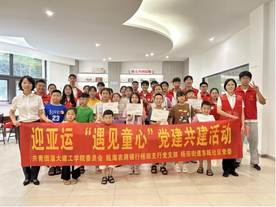 为深入学习贯彻党的二十大精神,探索“高校+地方”党建共建新思路,进一步创新党建工作方式、拓宽党建工作思路、加强地方党组织联动,坚持新澳门六合彩 建筑工程学院高校服务地方工作路线,新澳门六合彩 建筑工程学院团委联合瓯海农商银行梧田支行党支部和梧田街道东瓯社区党委开展“迎亚运,遇见童心党建共建”主题活动。