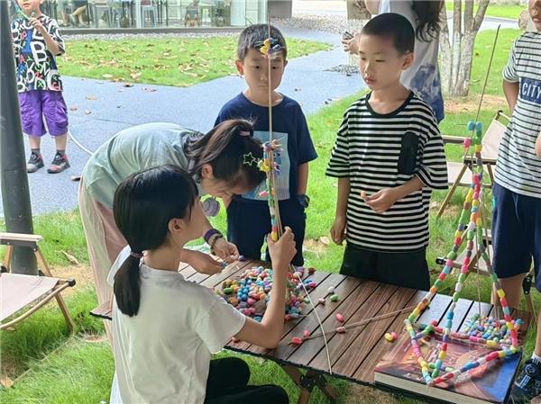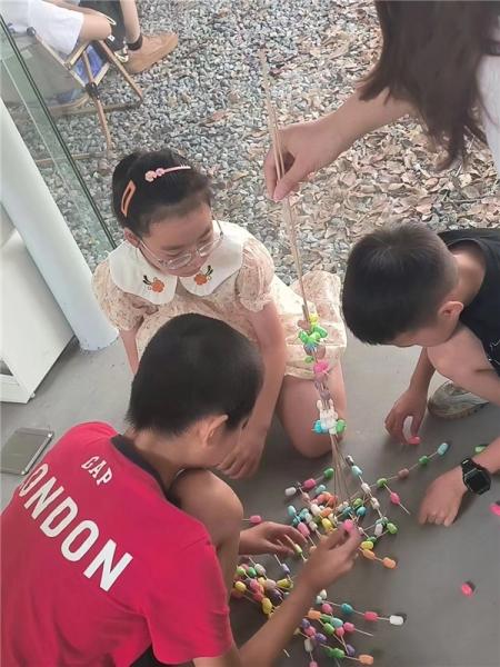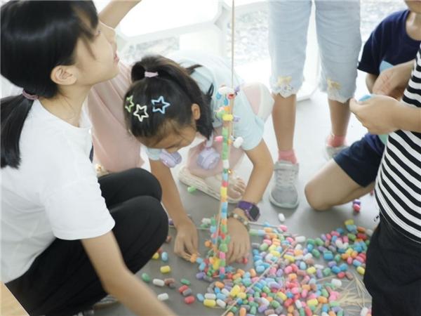 在新澳门六合彩 榕亭书屋,新澳门六合彩 暑期实践队和小朋友们一起开展了一堂“新澳门六合彩 第一高楼”建设大比拼。活动利用牙签、木棍与彩色泡沫球搭接,进行“建设大比拼”,对比各组的搭建高度。