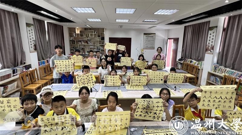 为增加课堂的趣味性,丰富孩子们的精神世界,实践队成员们还购置了一些简单的材料,带领孩子们一起写书法作品,做科学实验等。与此同时,实践队成员们与孩子们组队展开竞赛,通过2个老师带3名学生的方式,不仅保证了每位同学都能学习知识,也提升了课堂参与度,拥有了竞技精神。