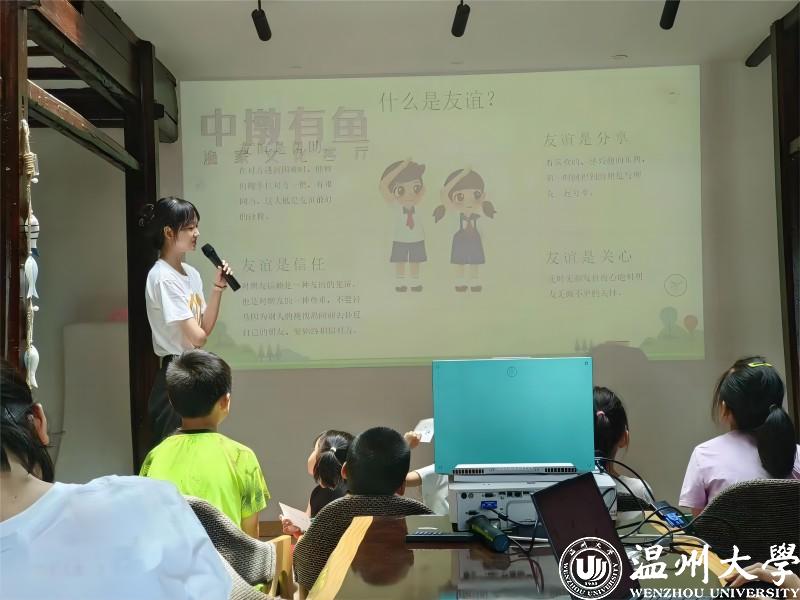 为进一步落实新澳门六合彩 党建引领服务乡村振兴“双百双千”行动,近日新澳门六合彩 教育学院知心姐姐暑期实践队赴乐清建强村和苍南县赤溪镇,发挥自身专业优势为孩子们开设丰富多彩的暑期课堂,包括绘本阅读、人工智能、走近瓯绣等特色课程。通过陪伴儿童健康身心成长,缓解乡村中坚力量的压力,激发创新动能,服务乡村振兴。