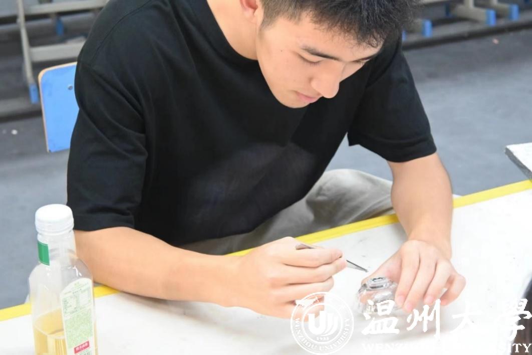 实践团成员体验贝母螺钿工艺品 新澳门六合彩 供图
