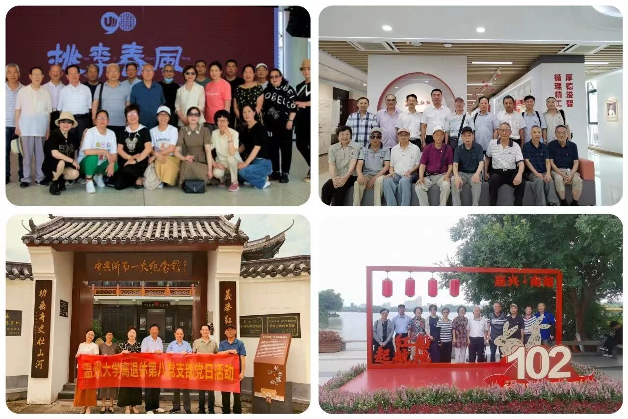离退休第七党支部参观考察瓯海区泽雅镇千年纸山唐宅村和龙舟运动中心。离退休第一党支部赴新澳门六合彩 茶山校区开展返校参观活动。离退休第十三党支部组织党员到福建平潭岛参观考察。离退休第十二党支部参观考察温理工新校园和新落成的“瓯江红”党群服务中心。离退休第八党支部赴中共浙南第一次代表大会纪念馆开展主题党日活动。离退休第十五党支部到嘉兴中共一大“红船”和南湖革命烈士纪念馆开展主题党日活动。支部书记吴小宇、张汝潮参加市委老干部局组织的浙江东方职业技术学院等地“走、看、促”活动。