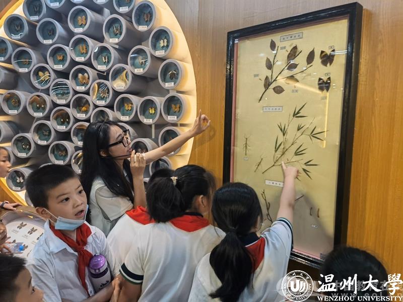 学生利用暑假时间,自发组建讲解小组带领中小学生参观新澳门六合彩 动物标本展示馆,通过现场参观、系统讲解和知识竞答等多种形式,向中小学生诠释尊重自然、顺应自然、保护自然的理念。