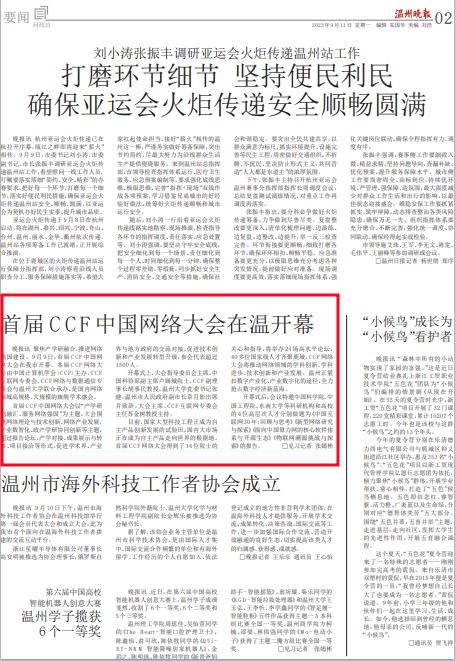 目前,国家大型科技工程正成为自主产品创新发展的试验田,国内大市场正在成为自主产品走向世界的根据地。 首届CCF网络大会得到了14位院士的关心和指导,将举办24场高水平论坛, 40多位国家级人才齐聚鹿城,CCF网络大会将推动网络领域的学科创新、学科进步、技术创新和产业发展。温州正紧扣数字产业化、产业数字化的途径,全力抢占数字经济新蓝海。