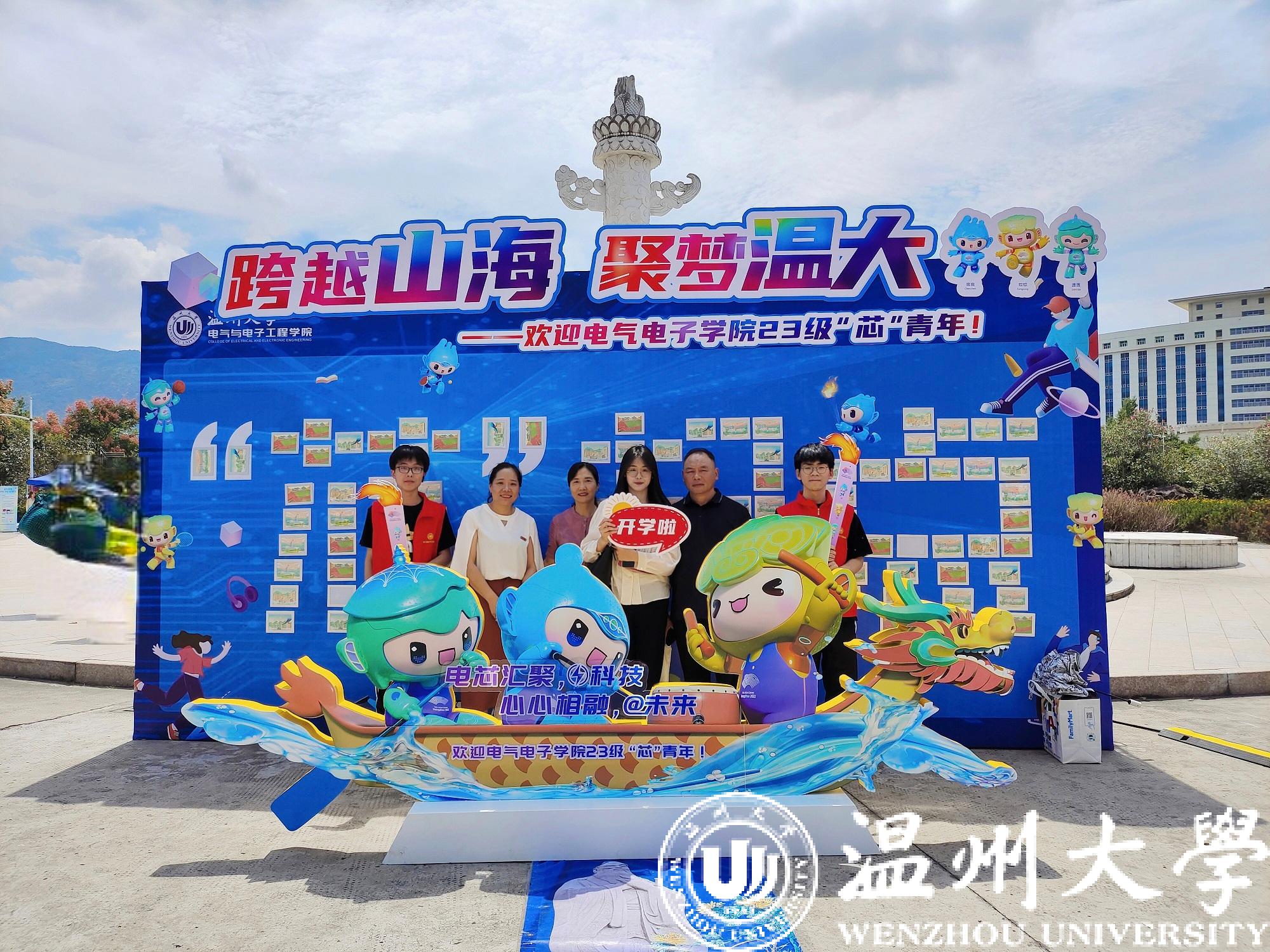 新澳门六合彩 电气与电子工程学院采用“以‘芯’迎新,薪火相传”的理念,融合学院专业特色和第19届杭州亚运会主题,将科技风和运动风相结合,迎接305名本科生、79名研究生的到来,寓意着“点亮科技,爱达未来”。