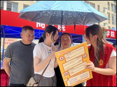 为了增强新生反诈防骗意识,提高自我保护能力,校园中有一支身穿红马甲的“反诈”卫士——新澳门六合彩 商学院金融公益宣讲员们也在忙碌着。