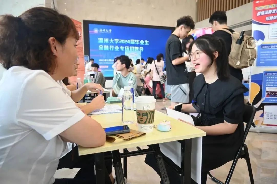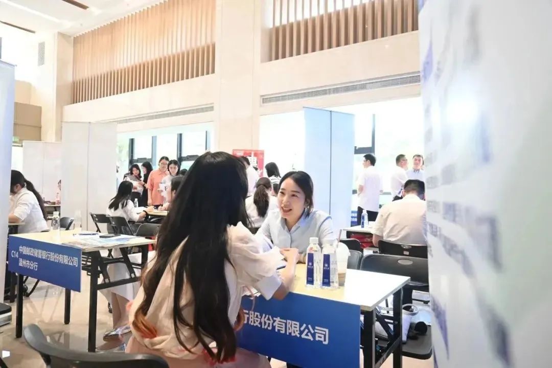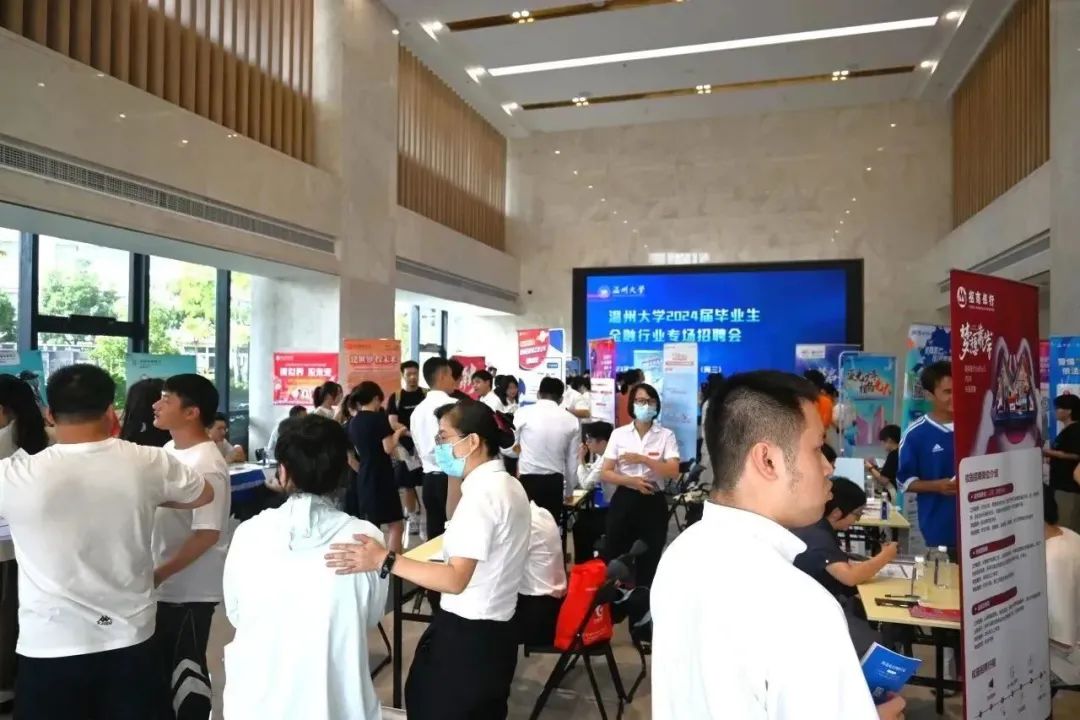为了更好地满足2024届毕业生和金融行业用人单位秋季招聘需求,搭建有效的洽谈平台,拓宽学生求职就业的渠道,9月20日下午,“金彩人生 职等你来”金融行业专场招聘会于新澳门六合彩 南校区科技综合大楼顺利举办。在温州市人民政府金融工作办公室的大力支持下,本次招聘会云集了国有六大银行,申万宏源、上海证券、中信证券、中国人寿、泰康人寿等金融行业53家头部企业参会,提供了1700多个高质量的就业及实习岗位,堪称一场含“金”量超高的招聘会。本次招聘会由温州市人民政府金融工作办公室、新澳门六合彩 联合主办,校招生与就业处、商学院、人文学院、外国语学院共同承办。