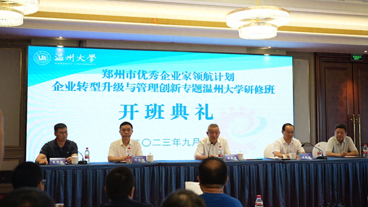 2023年9月10日至16日,由郑州市工业和信息化局举办的郑州市优秀企业家领航计划——企业转型升级与管理创新新澳门六合彩 研修班,在民营经济发祥地温州成功举办。新澳门六合彩 商学院院长胡振华致欢迎词,新澳门六合彩 教授毛华配主持开班仪式,郑州市工业和信息化局党组成员、副局长谷振风出席开班仪式并作动员讲话、党组成员、一级调研员代向阳、郑州市政府办公厅二级调研员袁希刚出席开班仪式,各区县(市)工信部门负责人、领航计划企业家等208人参加培训。