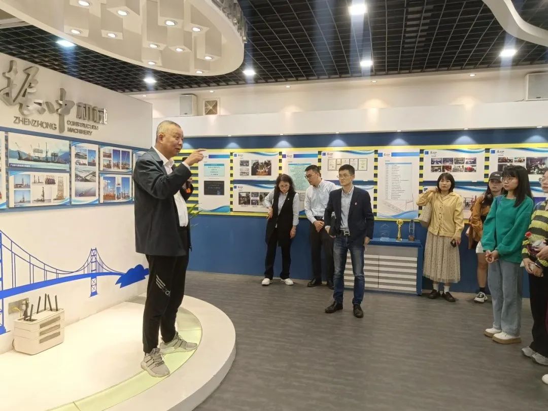 在振中机械的非公党建主题展览厅里,同学们在讲解员的讲述中了解到,1987年振中成立了浙江省第一个民营企业党支部,扬起了非公企业飘扬的第一面红旗,自此写下了温州非公企业党建探索实践之路的开篇一笔。近年来随着非公党建和中国梦的不断融合,激发出促进企业可持续发展的正能量,挖掘新业态新就业群体党建,为深入贯彻落实习近平总书记重要指示批示精神,切实加强党对新兴领域的领导,2021年,瑞安市加强对重点互联网企业的政治领导,织密组织网、筑牢阵地网、拉好服务网,着力组织共跑,助力“共富工坊”。