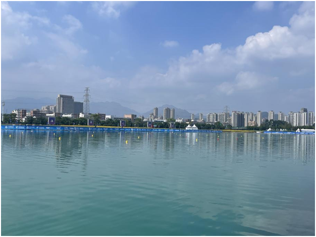据悉,亚运会龙舟项目于瓯海区龙舟基地开展,该基地位于温州市瓯海区中心区南单元,处于城市中央绿轴末端,周边有瓯海区奥体中心、知名酒店、居民住宅区及景观河,地理位置优越。中国队在本届赛事共获得5枚金牌和1枚银牌,于温州赛区的一汪碧水中创下亚运会该项目最好成绩。
