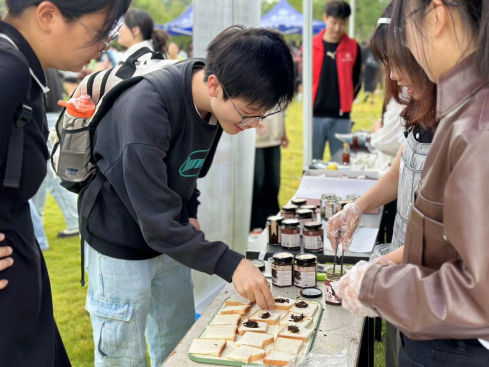 在净水装置制作及展示摊位上,同学们在聆听专业人员的讲解后,开始选择材料,动手亲自制作属于自己的水龙头过滤器。而羊栖菜品鉴摊位深受众多“吃货”喜爱,同学们用羊栖菜的发酵液现场制作碳酸饮料,用羊栖菜罐头制作三明治,有些同学甚至表示“不用吃午饭了”。