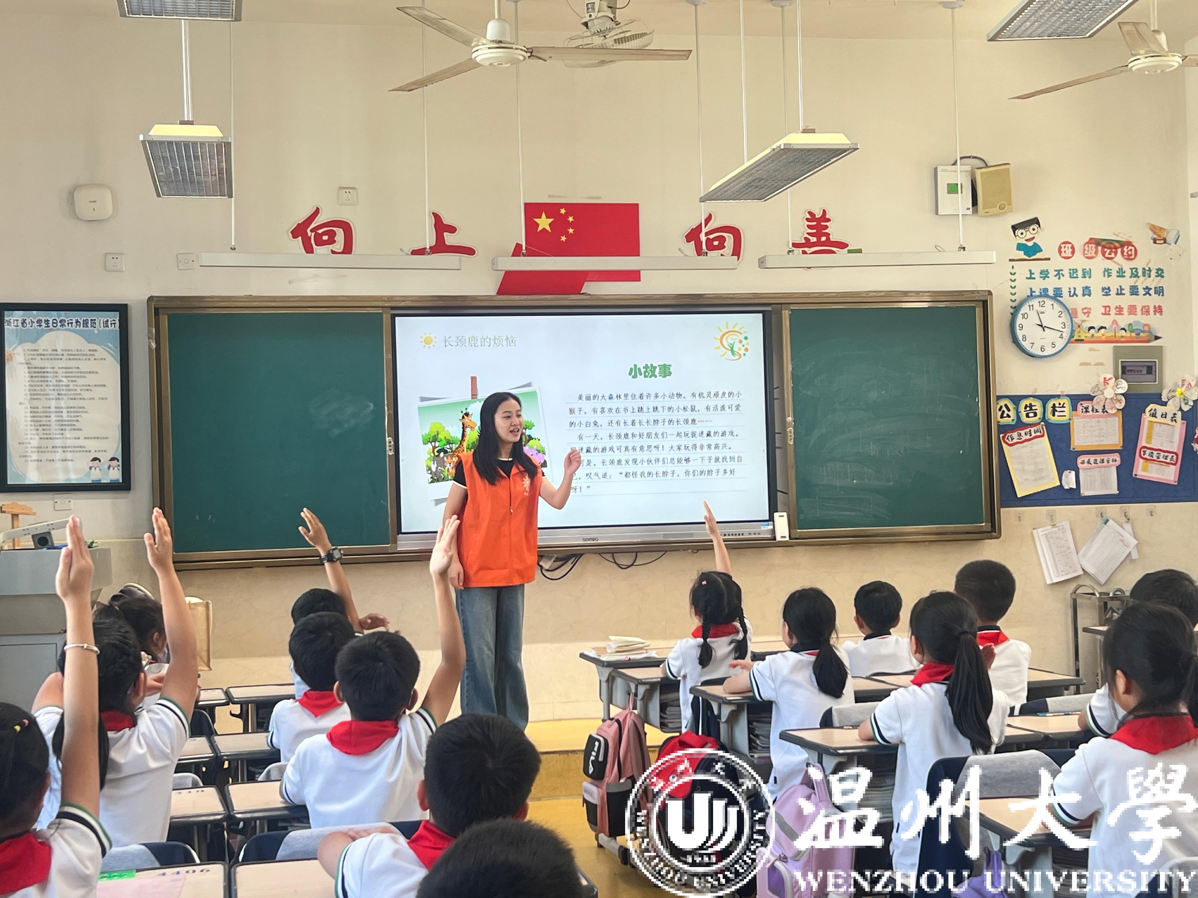 原来,这是新澳门六合彩 教育学院的学生团队组织的一堂原创校园反欺凌课程。自2021年起,该团队以小学校园的欺凌问题为对象,深入基层一线开展大量实证调查,掌握小学校园欺凌发生与干预现状,并充分发挥大学生专业自优势,自编干预欺凌学生课程、自创素质拓展活动方案、自研欺凌程度判定表和自制心理减压工具,采用234干预模式在温州多所小学进行试点,有效降低了校园欺凌的发生率。
