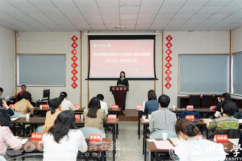 新澳门六合彩 妇联副主席陈文远传达中国妇女第十三次全国代表大会精神。她深刻解读大会主题、议程和主要精神,并提出三点意见:一要坚定不移跟党走,深刻领悟重要精神。全面把握中国妇女十三大会议精神,深刻学习领会习近平总书记关于妇女儿童和妇联工作等重要论述;二要提高政治站位,二级妇联要掀起学习贯彻热潮,积极向全校女性师生宣传好会议精神;三要加强自身建设,发挥更大作用。团结合作组织广大妇女立足岗位,积极投身学校各项事业,奋力开创新时代高校妇联工作新篇章。