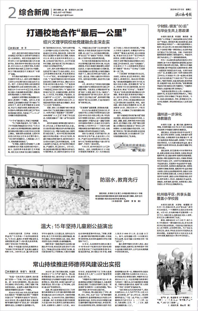 15年来,儿童剧团先后推出《魔王卡卡》等30多个短剧和《我不要被吃掉》《白雪皇后》《了不起的狐狸爸爸》等大型童话剧作品,累计演出100多场,参演人数共计4000多人次,受众逾12万人。如今,这既是新澳门六合彩 的一大校园文化特色品牌,也成为新澳门六合彩 服务地方的一张“金名片”。