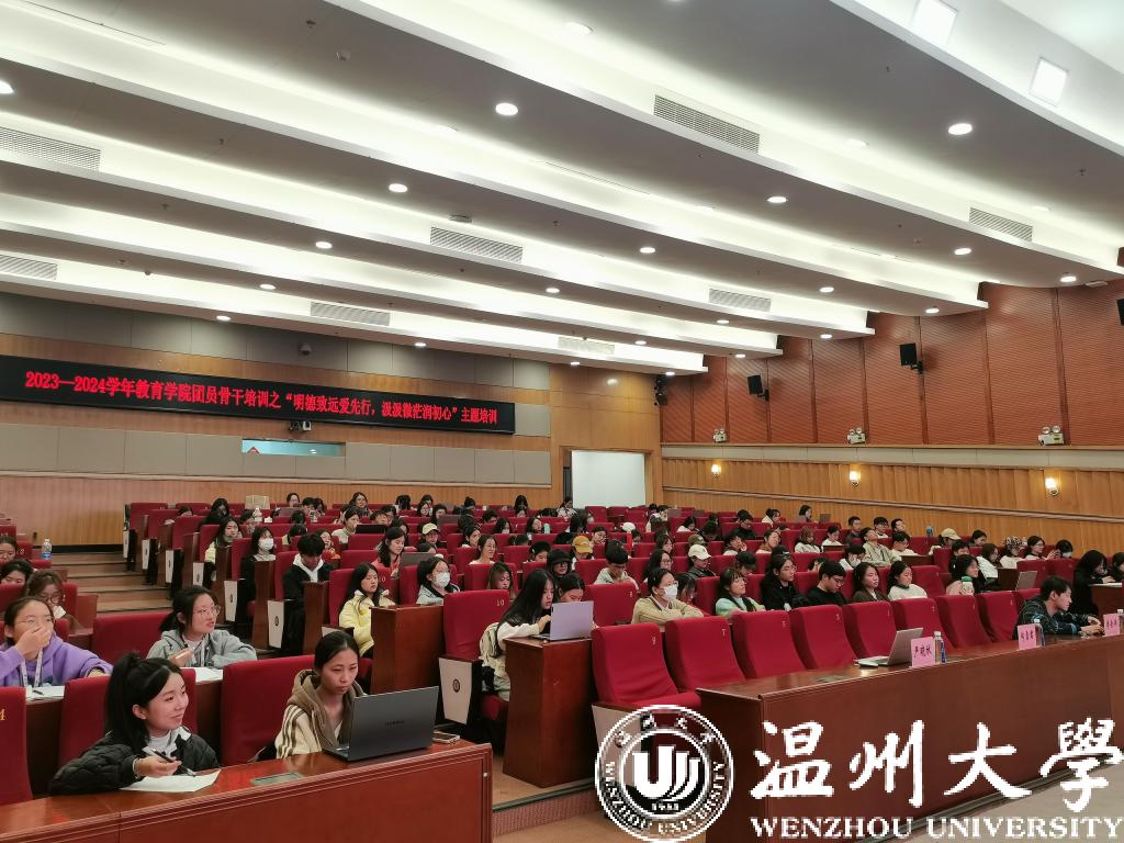 11月16日晚,新澳门六合彩 教育学院在育英图书馆二楼报告厅开展主题为“明德致远爱先行,汲汲微茫润初心”的团干培训活动,特邀全国劳模、浙江省雪君理论宣讲名师工作室负责人郑雪君主讲《让心中的太阳升起》的励志课。全院团学骨干近270人参与。