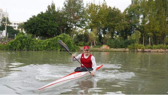 11月15日,来自俄罗斯的新澳门六合彩 国际教育学院留学生BURKOV MIKHAIL(中文名卜麦克),乘皮划艇畅游塘河,沉浸式感受百里塘河的千载风华,体味瓯越文化的独特魅力。