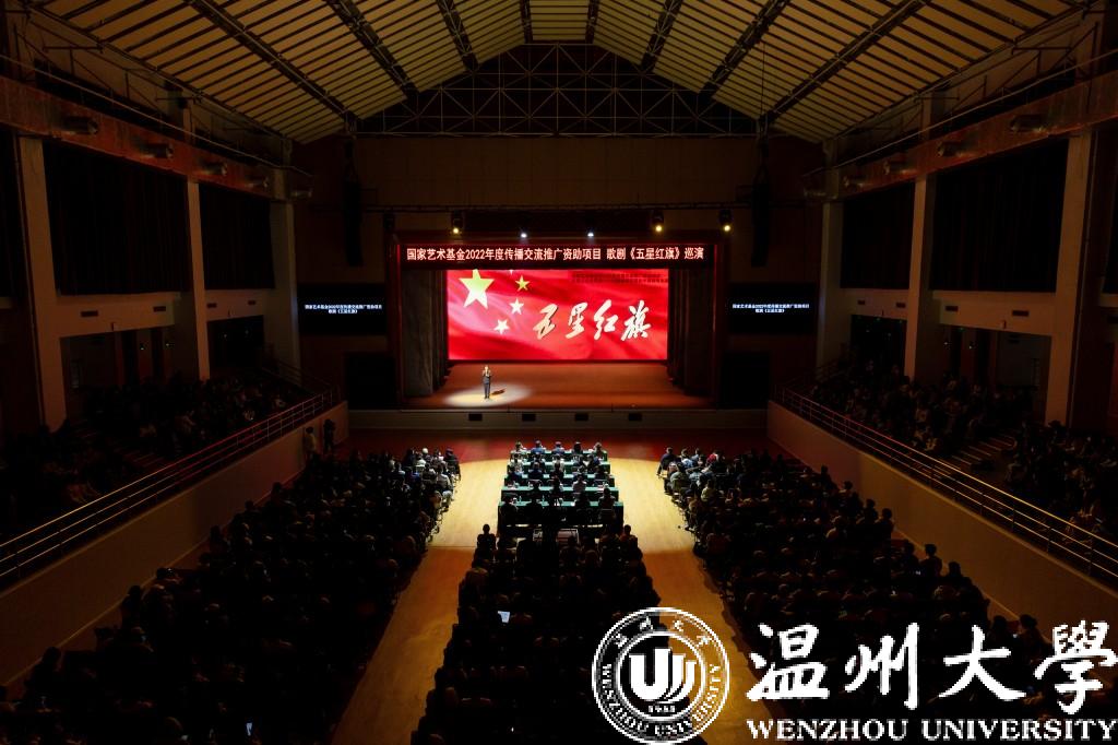 歌剧《五星红旗》于2019年国庆节在温州大剧院首演,座无虚席,好评如潮。本次巡演中,创演团队根据巡演要求,全新打造了巡演版歌剧《五星红旗》。巡演版时长70分钟左右,全体演职人员均为新澳门六合彩 音乐学院师生,由第十一届中国音乐“金钟奖”获得者、青年歌唱家陈大帅老师,第九届“孔雀杯”高等艺术院校声乐展演综合师范院校教师美声组“金孔雀奖”第一名祝海燕老师,美国明尼苏达歌剧院、美国爱达荷歌剧院签约歌唱家张上老师和易雄志、许天明老师等担任主演。