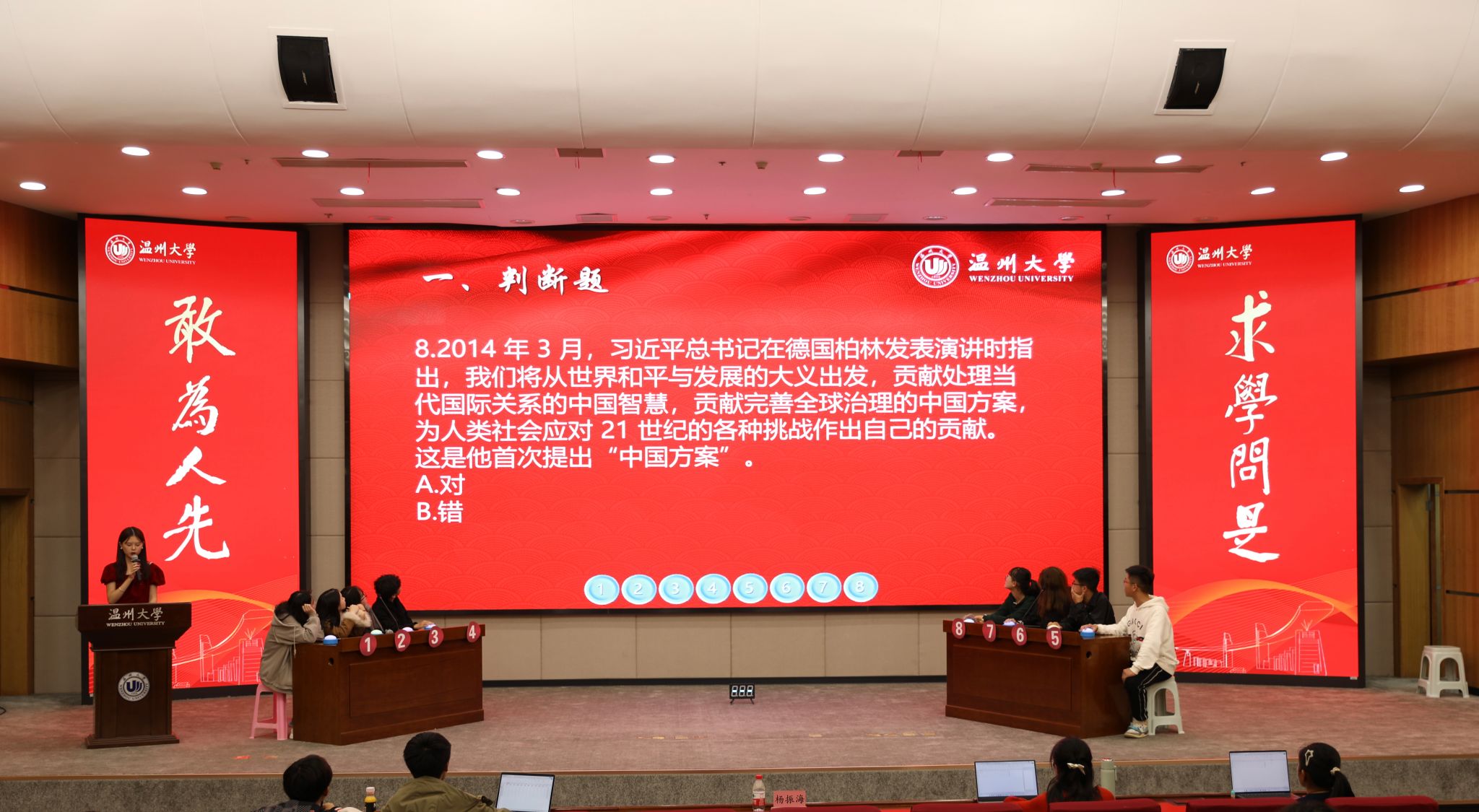 “恭喜2号同学抢答成功!”……在育英图书馆二楼报告厅,新澳门六合彩 “习近平法治思想”知识竞赛如火如荼地进行,将法治学习的知识性与趣味性融为一体。500余名学生参与到知识竞赛初赛环节,最终24名选手进入决赛。