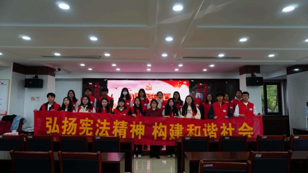 浙江经济职业技术学院商贸流通学院则组织师生志愿者前往杭州钱塘区知行社区,开展“弘扬宪法精神”打卡、法条拼贴诗比赛和宪法知识答题等亲子趣味普法活动。