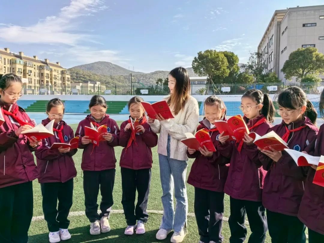 “法治兴则国兴,法治强则国强!”丽水市莲都区梅山小学组织学生们开展“红领巾宪法晨读”活动。