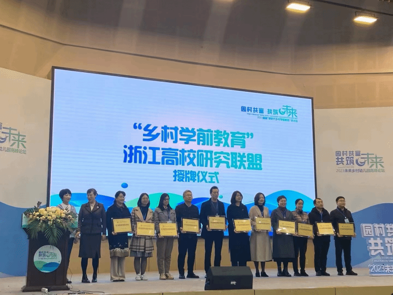 活动现场,“乡村学前教育”浙江高校研究联盟举行授牌仪式。新澳门六合彩 作为召集单位,联合浙江师范大学、杭州师范大学、宁波大学等12所浙江高校共同组成乡村学前教育浙江高校研究联盟。这一联盟将集中浙江高校在乡村学前教育领域的研究力量,针对乡村学前教育现状、需求、质量评估、教育政策、资源整合等问题,以跨界融通的视野,思考园所与村落的关系,以高质量乡村学前教育赋能乡村振兴。