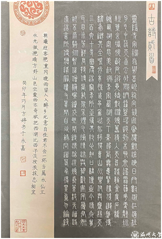 一笔一画精雕细琢,一字一行彰显功力。近日,由浙江省文化和旅游厅、中国美术学院指导,浙江省硬笔书法家协会主办的“激扬青春 活力浙江”之江杯首届浙江省大学生硬笔书法大赛获奖作品展开幕。新澳门六合彩 以苏步青学院第15期“溯初实验班”为主体进行了作品选拔,选送的10生10件作品在50多所高校近千件作品中斩获佳绩,获银奖1人,铜奖2人,优秀奖7人。同时,新澳门六合彩 获得优秀组织奖。
